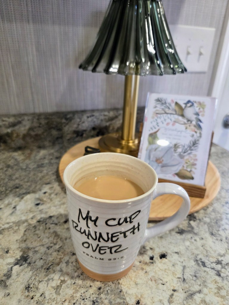 This coffee mug was gifted to me this fall by my college roommate, Margie Rivera. It sums up my heart. God’s goodness. His rich mercy. My cup runneth over. Psalm 23:5